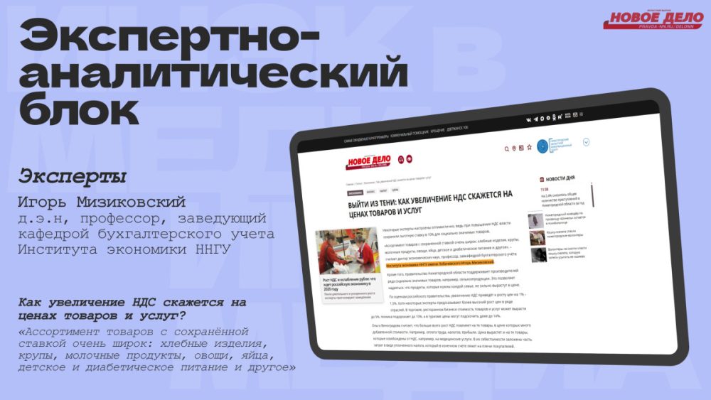 Как увеличение НДС скажется на ценах товаров и услуг, – выражает мнение в новостном выпуске «Новое дело» профессор, заведующий кафедрой бухгалтерского учета Института экономики ННГУ Игорь Мизиковский.