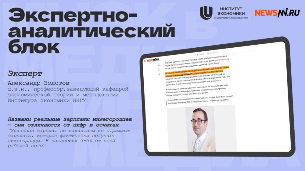 Названы реальные зарплаты нижегородцев — они отличаются от цифр в отчетах. Поделился своим мнением о данной ситуации в сетевом издании NEWNN.RU профессор, заведующий кафедрой экономической теории и методологии Института экономики ННГУ Александр Золотов.