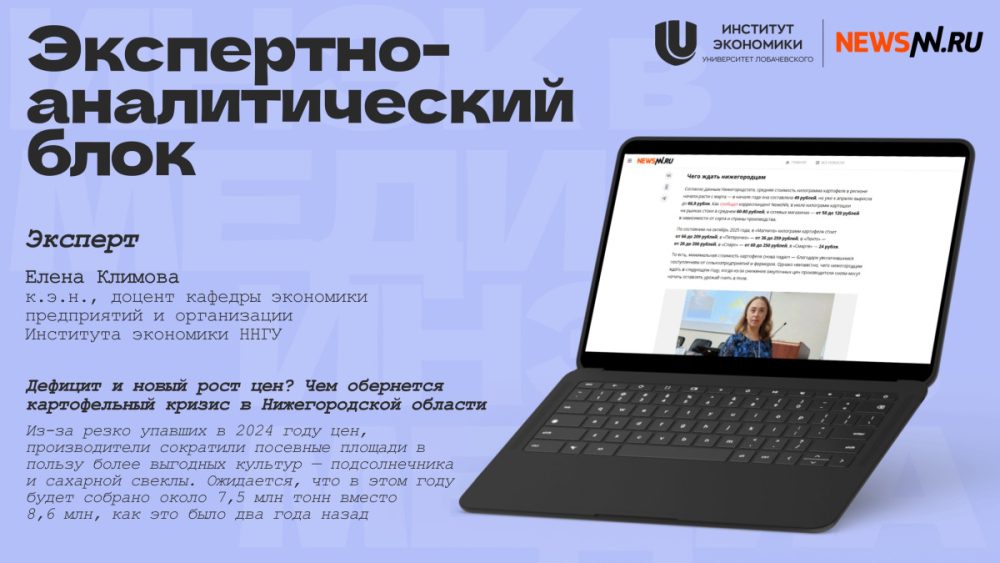 Дефицит и новый рост цен? Чем обернется картофельный кризис в Нижегородской области, – своим экспертным мнением поделилась в новостном паблике NEWSNN.RU доцент кафедры экономики предприятий и организации Института экономики ННГУ Елена Климова.