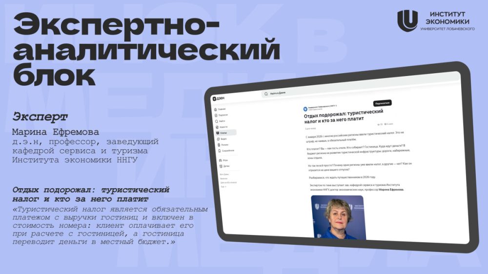 Новая статья на канале «Университет Лобачевского» в Дзен — всё о туристическом налоге: кто и как его платит, почему он появился и насколько подорожает отдых.