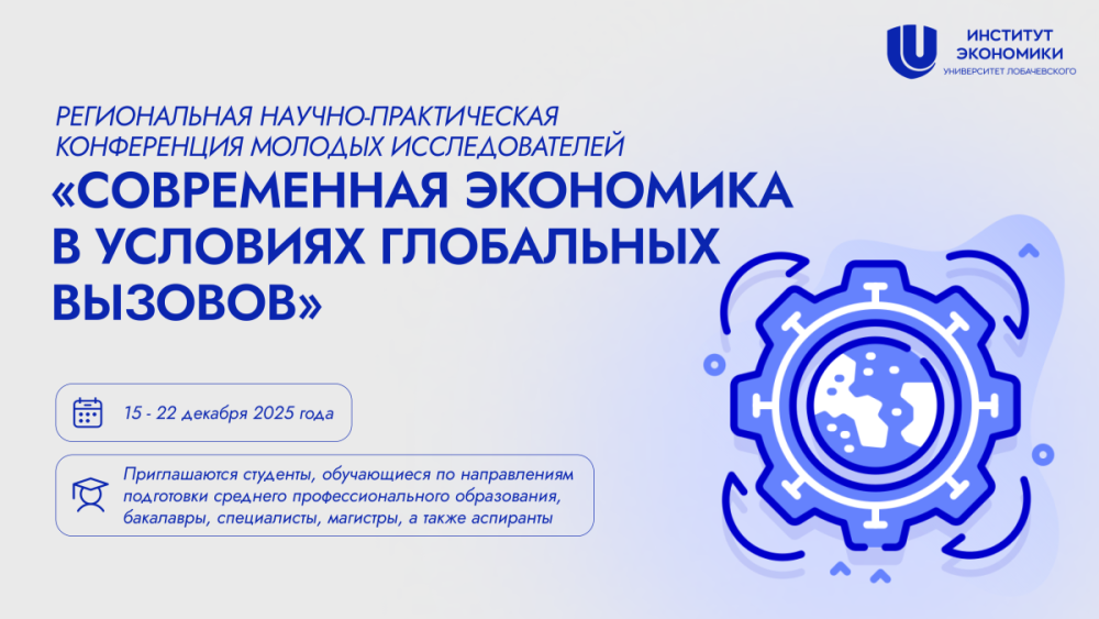 Региональная научно-практическая конференция молодых исследователей «Современная экономика в условиях глобальных вызовов» будет проходить с 15 по 22 декабря 2025 года.