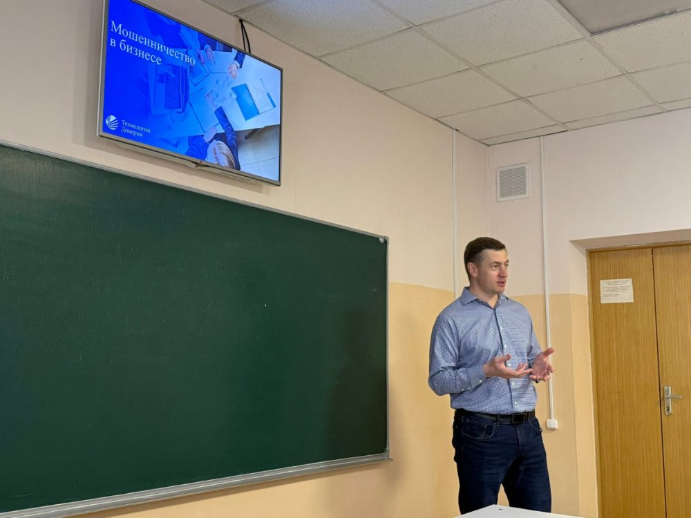 За прошедший месяц состоялись четыре визита компании «Технологии доверия» к нашим студентам. Представитель компании Алексей Куликов познакомил ребят с деятельностью организации и форматами их работы, после чего провёл серию занятий на тему «Мошенничество в бизнесе».