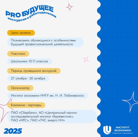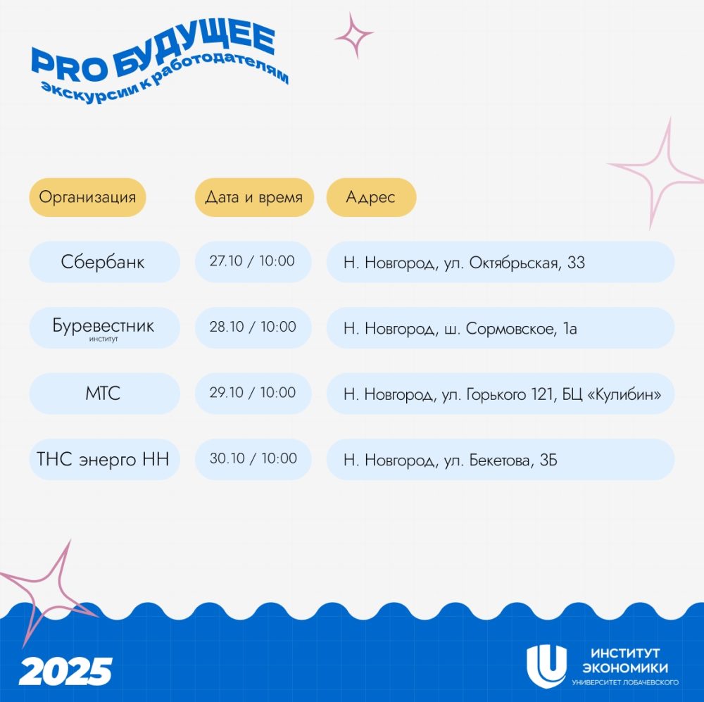 Институт экономики ННГУ запускает новый сезон проекта «PRO БУДУЩЕЕ»! Мы организуем для тебя экскурсии прямо в офисы топовых компаний: