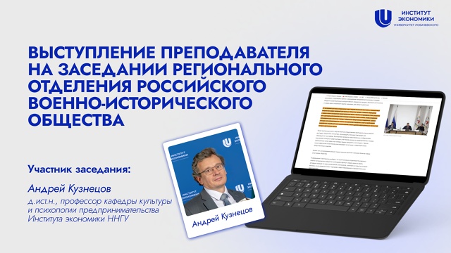 На заседании регионального отделения Российского военно-исторического общества с докладом выступил доктор исторических наук, профессор кафедры культуры и психологии предпринимательства Института экономики ННГУ Андрей Кузнецов.