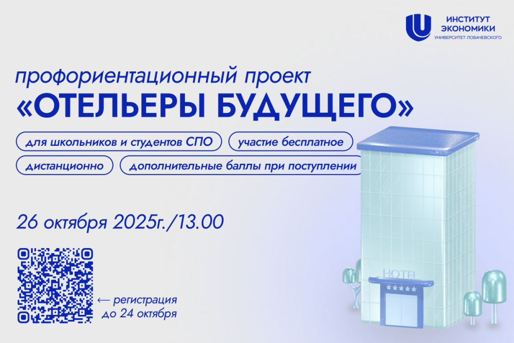 Институт экономики ННГУ объявляет набор на профориентационный проект «Отельеры будущего». К участию приглашаются школьники 9-11 классов и студенты, обучающиеся на специальностях среднего профессионального образования.