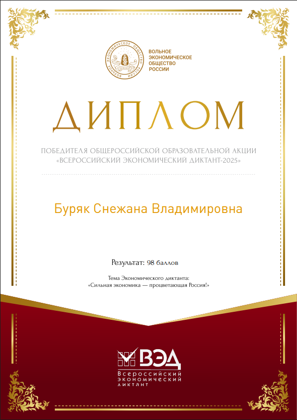 Итоги Экономического диктанта-2025 будут презентованы 11 ноября 2025 г. на Всероссийском экономическом Собрании, Юбилейном Съезде ВЭО России, посвященным 260-летию ВЭО России и профессиональному празднику «День экономиста» на сайте акции.